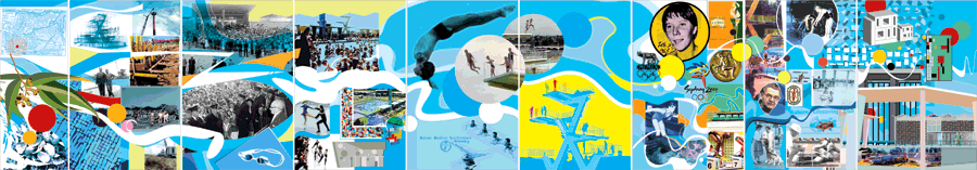 The Auburn Swimming Centre - opened in 1959 - with its quality construction, striking Modernist appearance and attention to detail, aroused the interest of many an architect, designer and engineer. It appeared on the covers of architectural magazines, attracted feature stories in design publications and was described as a “playland for swimmers” and an “aquatic beauty queen”. Geometric design motifs and bright colours added to the carnival atmosphere.